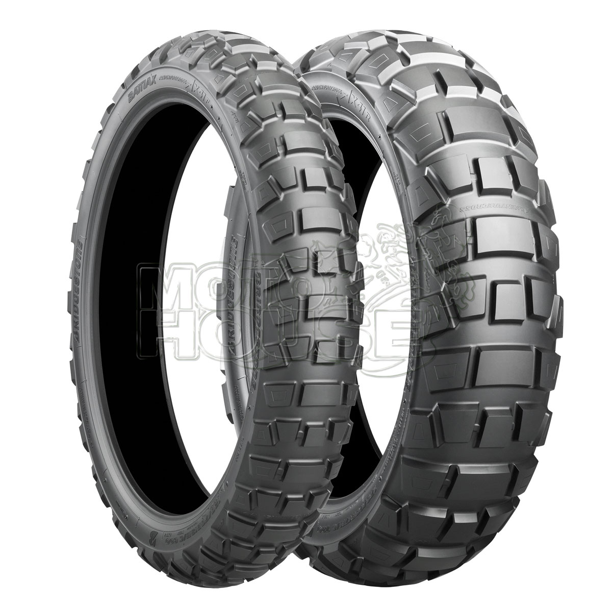 La nueva Battlax Adventurecross AX41 te permitirá tomar cualquier tipo de camino y te permitirá disfrutar del viaje, ¡incluso cuando te adentres en lo desconocido! Battlax Adventurecross AX41 es una combinación real del know-how de Bridgestone de caminos en carretera con tecnología Battlax y las capacidades del posicionamiento de bloques en el mundo Off-road con la serie Battlecross. El AX41 adopta un ingenioso diseño y posicionamiento de bloques para garantizar el rendimiento, la durabilidad y la estabilidad dentro y fuera de la carretera. Al introducir un verdadero neumático Carretera-Off-Road en su línea, Bridgestone completa su oferta de productos.